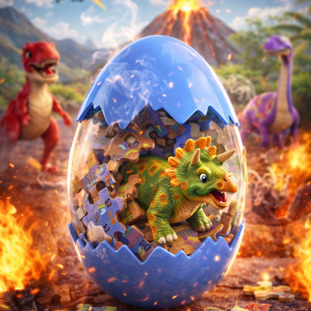Das Dinosaurier Ei Puzzle bietet eine spannende Überraschung für neugierige Kinder. In jedem Ei verbirgt sich ein 60 teiliges Holzpuzzle mit farbenfrohen Urzeitmotiven die zusammengesetzt werden wollen und so spielerisch die Welt der Dinosaurier lebendig machen.